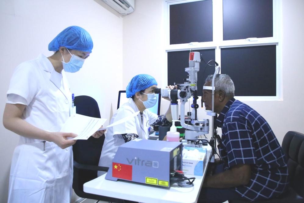 69歲的艾哈邁德·卡洛是中國(guó)醫(yī)療隊(duì)“光明行”活動(dòng)的獲益者。兩個(gè)兒子曾帶著患有眼疾多年的老人輾轉(zhuǎn)多家醫(yī)院,均因手術(shù)難度大而無(wú)法得到有效治療。2023年,中國(guó)醫(yī)療隊(duì)醫(yī)生經(jīng)過(guò)充分評(píng)估后,給老人成功實(shí)施了手術(shù)。術(shù)后揭開(kāi)眼罩時(shí),老人家激動(dòng)地說(shuō):“醫(yī)生,我可以看到你的胸牌了,謝謝你!”老人的兒子也在社交媒體發(fā)帖說(shuō):“真誠(chéng)感謝中國(guó)醫(yī)生。”除了治病,中方還著力培訓(xùn)當(dāng)?shù)蒯t(yī)務(wù)人員,力爭(zhēng)為當(dāng)?shù)卮蛟煲恢?ldquo;帶不走”的眼科專家隊(duì)伍。