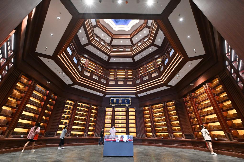 2022年7月30日,觀眾在中國(guó)國(guó)家版本館中央總館文瀚廳內(nèi)參觀。當(dāng)日,中國(guó)國(guó)家版本館開館暨展覽開幕式在中國(guó)國(guó)家版本館中央總館舉行。新華社記者 李鑫 攝
