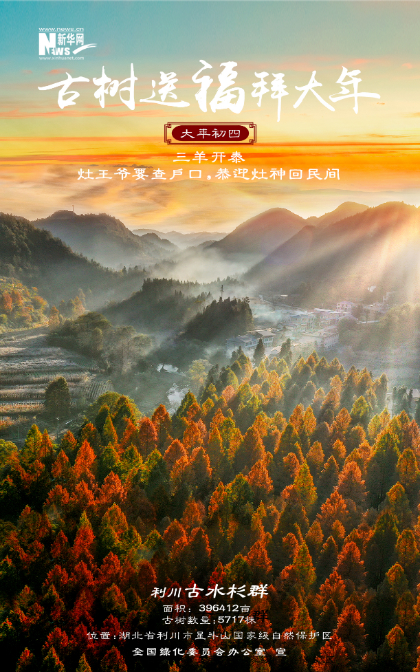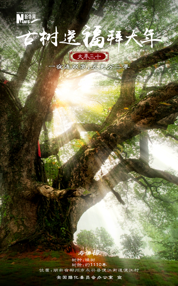 今年春節(jié),新華網(wǎng)聯(lián)合全國(guó)綠化委員會(huì)辦公室,策劃推出“古樹送福拜大年”系列海報(bào)12張,選取寓意喜樂(lè)吉祥、文化底蘊(yùn)深厚、景觀自然絕美的古樹名木,結(jié)合中國(guó)春節(jié)習(xí)俗,給廣大網(wǎng)友拜年啦!