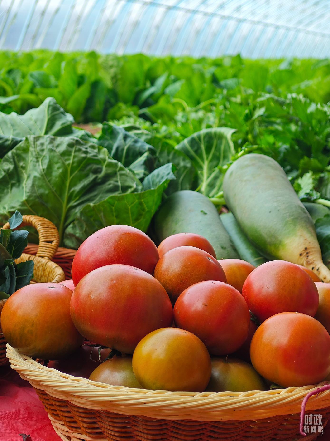 △第六埠村蔬菜大棚,蔬菜收獲頗豐。(總臺央視記者彭漢明拍攝)