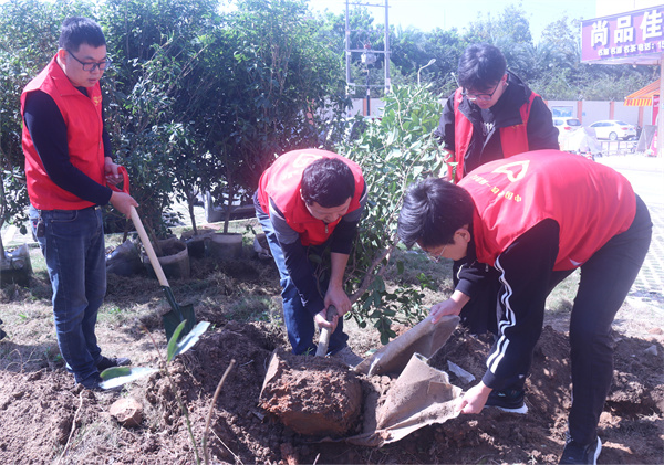 經(jīng)過一上午緊張的勞動,新培的50余顆桂花樹苗在春日里展現(xiàn)出勃勃生機,原本光禿的地段已經(jīng)穿上了綠色的衣裳!