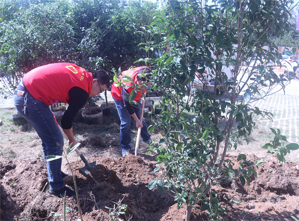 活動中,大家分工明確,互幫互助,用自己的勞動詮釋著對大自然生命的關(guān)愛,并在相互配合中享受著一片綠色的春意。