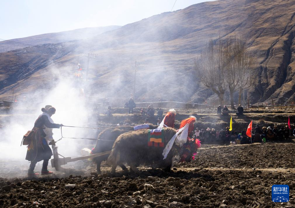 這是3月16日拍攝的西藏山南市瓊結(jié)縣加麻鄉(xiāng)加麻村的春耕儀式現(xiàn)場。新華社記者 旦增尼瑪曲珠 攝