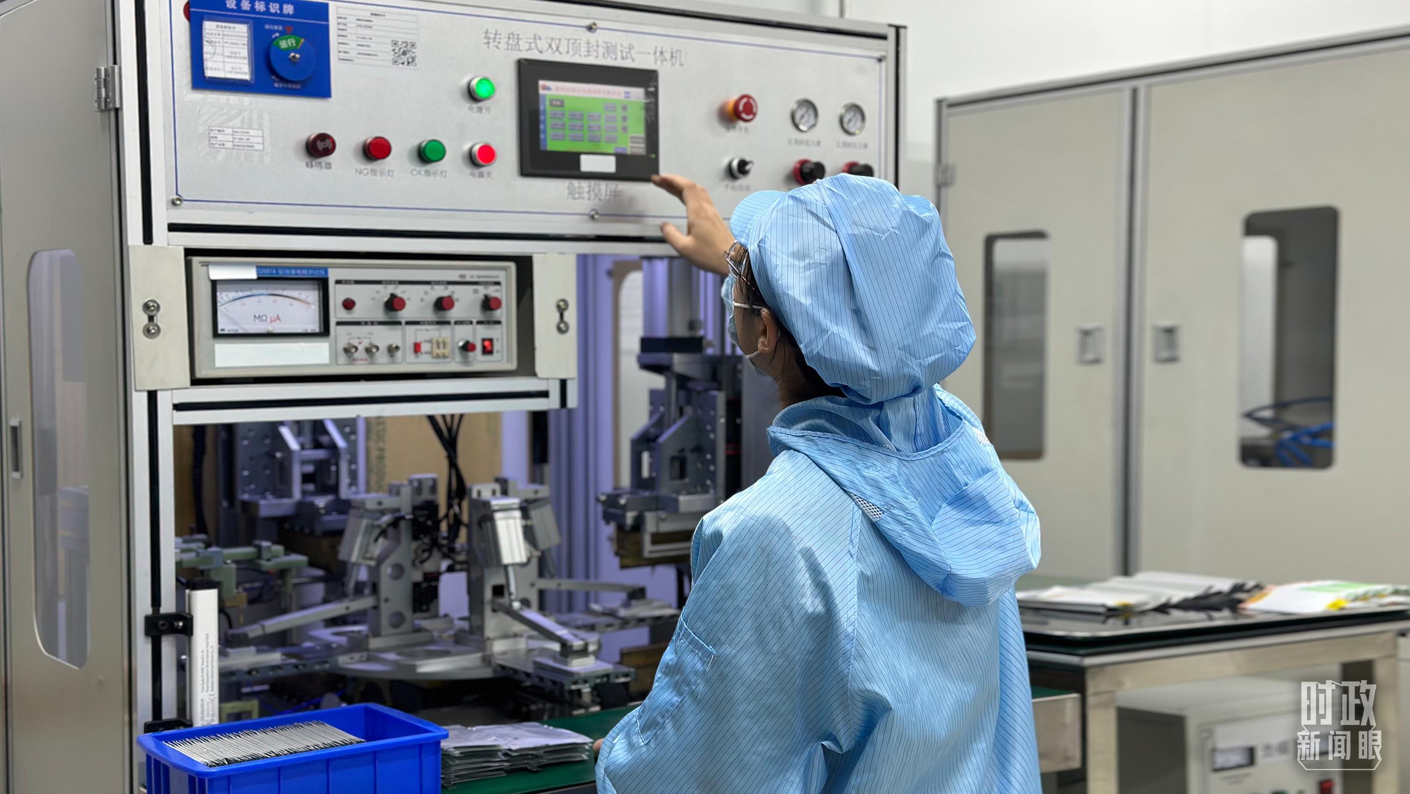 △企業(yè)電池技術(shù)中心內(nèi),員工正在進(jìn)行電池封裝。(總臺央視記者盧心雨拍攝)