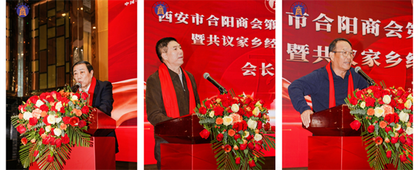 秦商總會(huì)執(zhí)行會(huì)長(zhǎng)劉阿津先生、西安市合陽(yáng)商會(huì)名譽(yù)會(huì)長(zhǎng)喬軍先生、北京鴻基世業(yè)集團(tuán)董事張志鴻先生作為來(lái)賓代表致辭。對(duì)新當(dāng)選的商會(huì)領(lǐng)導(dǎo)班子成員表示祝賀,未來(lái)大家會(huì)一如既往地?zé)釔坳P(guān)心合陽(yáng),宣傳支持合陽(yáng),共同為建設(shè)美好家鄉(xiāng)貢獻(xiàn)力量。希望商會(huì)和各位鄉(xiāng)友把個(gè)人發(fā)展與家鄉(xiāng)發(fā)展緊密結(jié)合起來(lái),帶領(lǐng)大家積極走出去,把“先進(jìn)技術(shù)”帶回來(lái)、把“優(yōu)質(zhì)項(xiàng)目”落下來(lái),為合陽(yáng)的高質(zhì)量發(fā)展賦能助力。