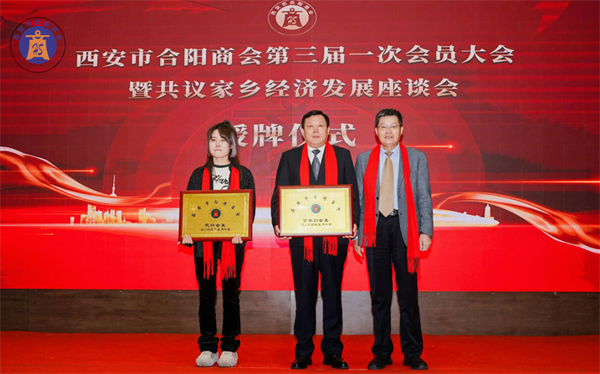 西安市合陽(yáng)商會(huì)常務(wù)副會(huì)長(zhǎng)喬軍先生、執(zhí)行會(huì)長(zhǎng)王伽懿伶女士為理事、監(jiān)事授牌。