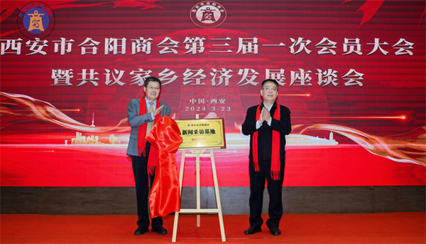 西安市合陽(yáng)商會(huì)會(huì)長(zhǎng)賈申龍先生與中國(guó)商業(yè)聯(lián)合會(huì)副秘書長(zhǎng)朱清平先生共同為西安市合陽(yáng)商會(huì)新聞采訪基地揭牌。