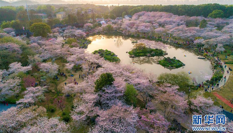 武漢:櫻花繽紛醉游人